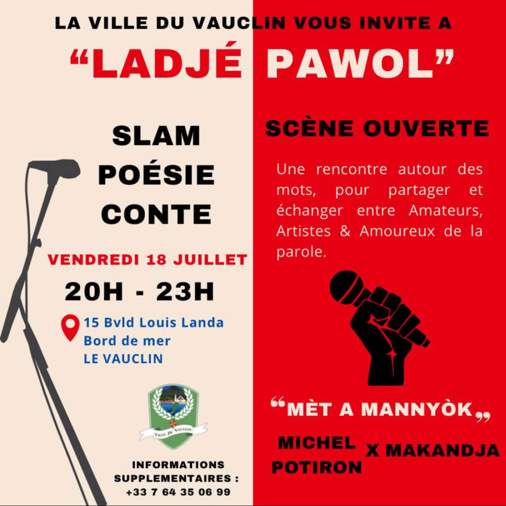 SLAM-POÉSIE-CONTE SCÈNE OUVERTE Une rencontre autour des mots, pour partager et échange « MÈT A MANNYOK ,,MICHEL X MAKANDJA POTIRON