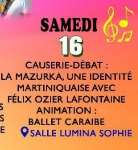 CAUSERIE-DÉBAT : LA MAZURKA, UNE IDENTITÉ MARTINIQUAISE AVEC FÉLIX OZIER LAFONTAINE ANIMATION : BALLET CARAIBE