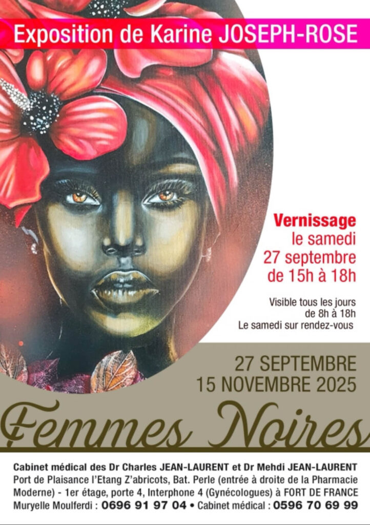 Karine JOSEPH-ROSE Vernissage le samedi 27 septembre de 15h à 18h Visible tous les jours de 8h à 18h Le samedi sur rendez-vous