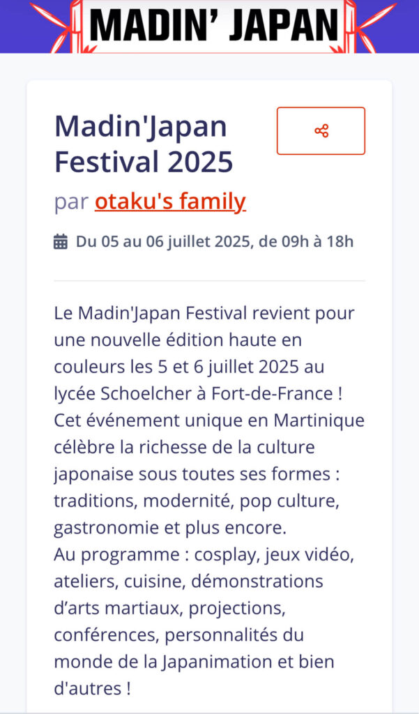 par otaku’s family. au lycée Schoelcher à Fort-de-France ! Cet événement unique en Martinique célèbre la richesse de la culture japonaise sous toutes ses formes