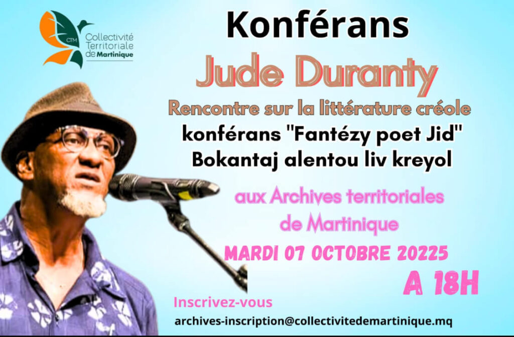 Konférans avec Jude Duranty Rencontre sur la littérature créole Bokantaj alentou liv kreyol aux Archives territoriales de Martinique
