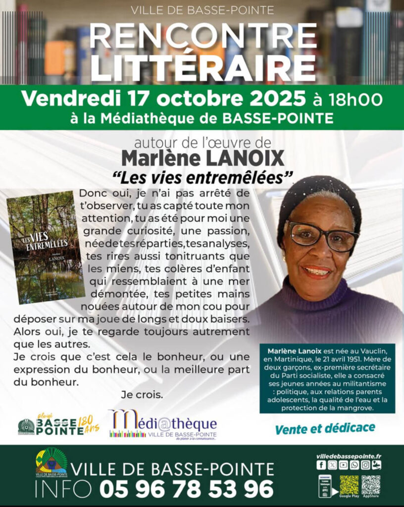 MURIELLE MADELEINE MARTHELIE présente sont livré. Dans le cadre de « RENCONTRE LITTÉRAIRE » LES VENDREDIS DE LA PLACE