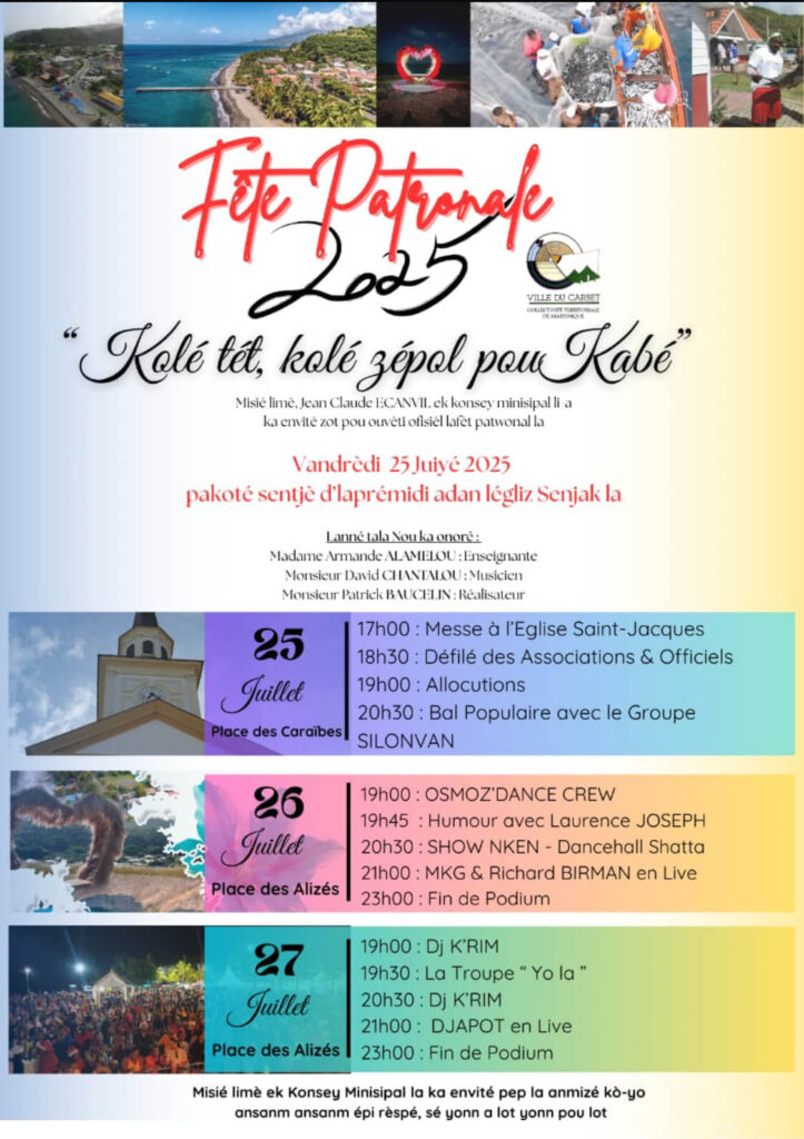 RDV à 9h • Centre Nautique à Pointe Fort Beach Rowing DRS, Kayal et Paddle Cérémonie Officielle 17h00 : Messe solennelle 18h45 : Dépôt de gerbe 19h00 : Défilé