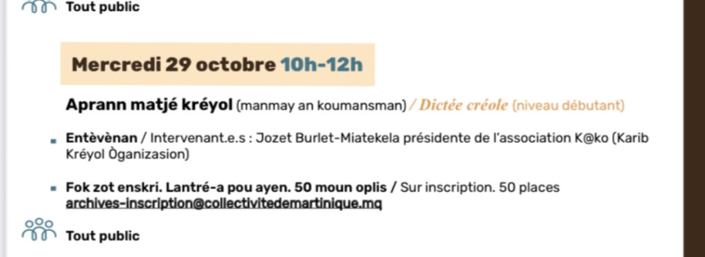 (manmay an koumansman) / Dictée créole (niveau débutant) – Entèvènan / Intervenant.e.s : Jozet Burle