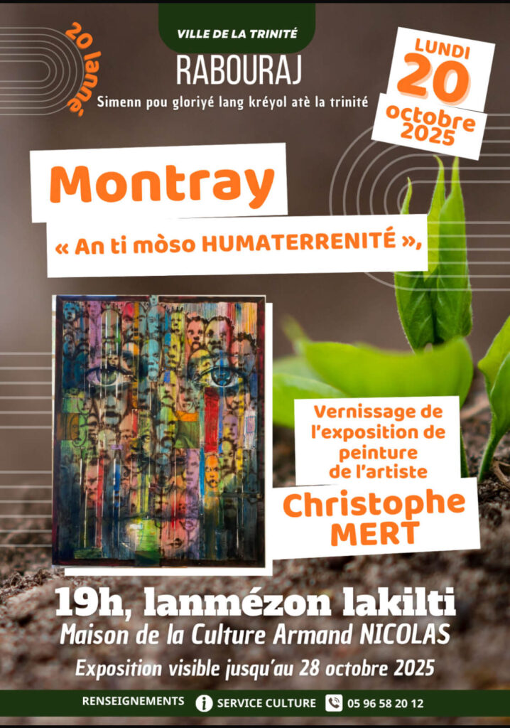 Peinture de l’artiste Montray « An ti mòso HUMATERRENITÉ ». RABOURAJ Simenn pou gloriyé lang kréyol