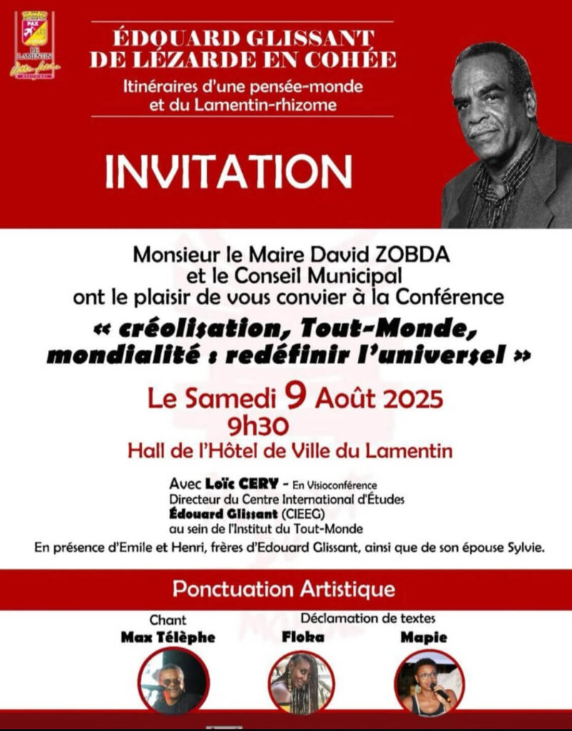 ÉDOUARD GLISSANT DE LÉZARDE EN COHÉE Itinéraires d’une pensée-monde et du Lamentin-rhizome Hall de l’Hôtel de Ville du Lamentin Avec Loïe CERY directeur(CIEEG)
