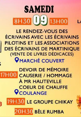 8h30 : LE RENDEZ-VOUS DES ÉCRIVAINS PILOTINS ET ASSOCIATIONS DES ÉCRIVAINS DE MARTINIQUE (Voir programme)